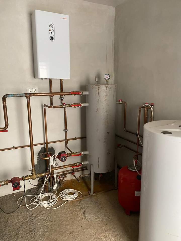 Casa este izolata termic, incalzita cu centrala pe lemne, avand boiler pentru apa calda, dispune de un beci generos, separat bucatarie cu o camara in suprafata totala de 79 mp. Utilitati: curent electric, apa trasa in casa, fosa septica, dar si canalizare in fata portii.