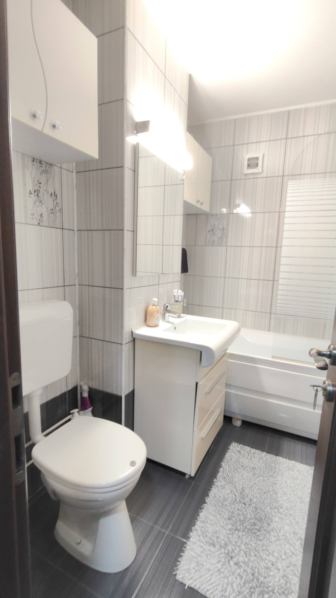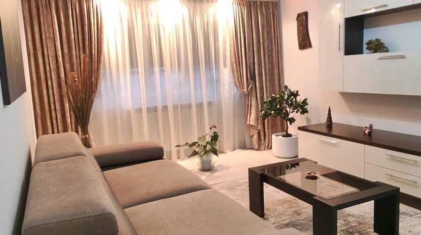 Vă punem la dispoziție un apartament cu două camere, situat la etajul 1, format din living, dormitor, baie, bucătărie și balcon, recent renovat, integral cu finisaje moderne și dotări de top (Geamuri tripan, Instalatie electrica noua cu fire din cupru, Instalatie căldură din cupru cu Centrală Imergaz condensare, Izolatie interior + exterior)